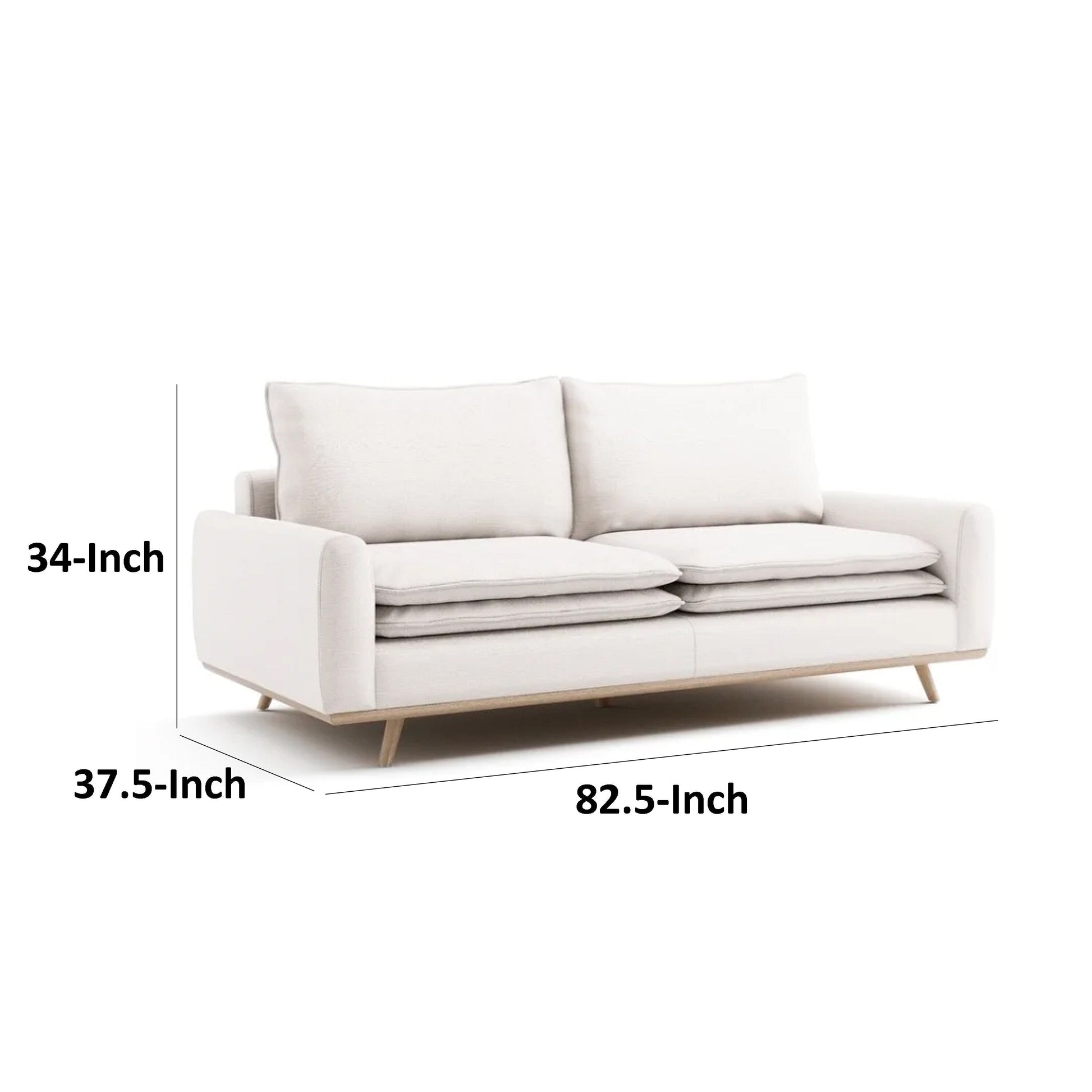 Sublimez votre espace avec ce canapé moderne du milieu du siècle, doté d'un revêtement en coton et lin blanc lin. Le coussin de dossier en mélange de plumes et le coussin d'assise en mousse haute densité assurent le confort, tandis que la structure et les pieds en chêne massif brun garantissent la durabilité. Conçu pour durer, il est doté d'une suspension à sangles et ressorts en zigzag pour un soutien optimal. Découvrez notre collection Yaana pour plus d'options.