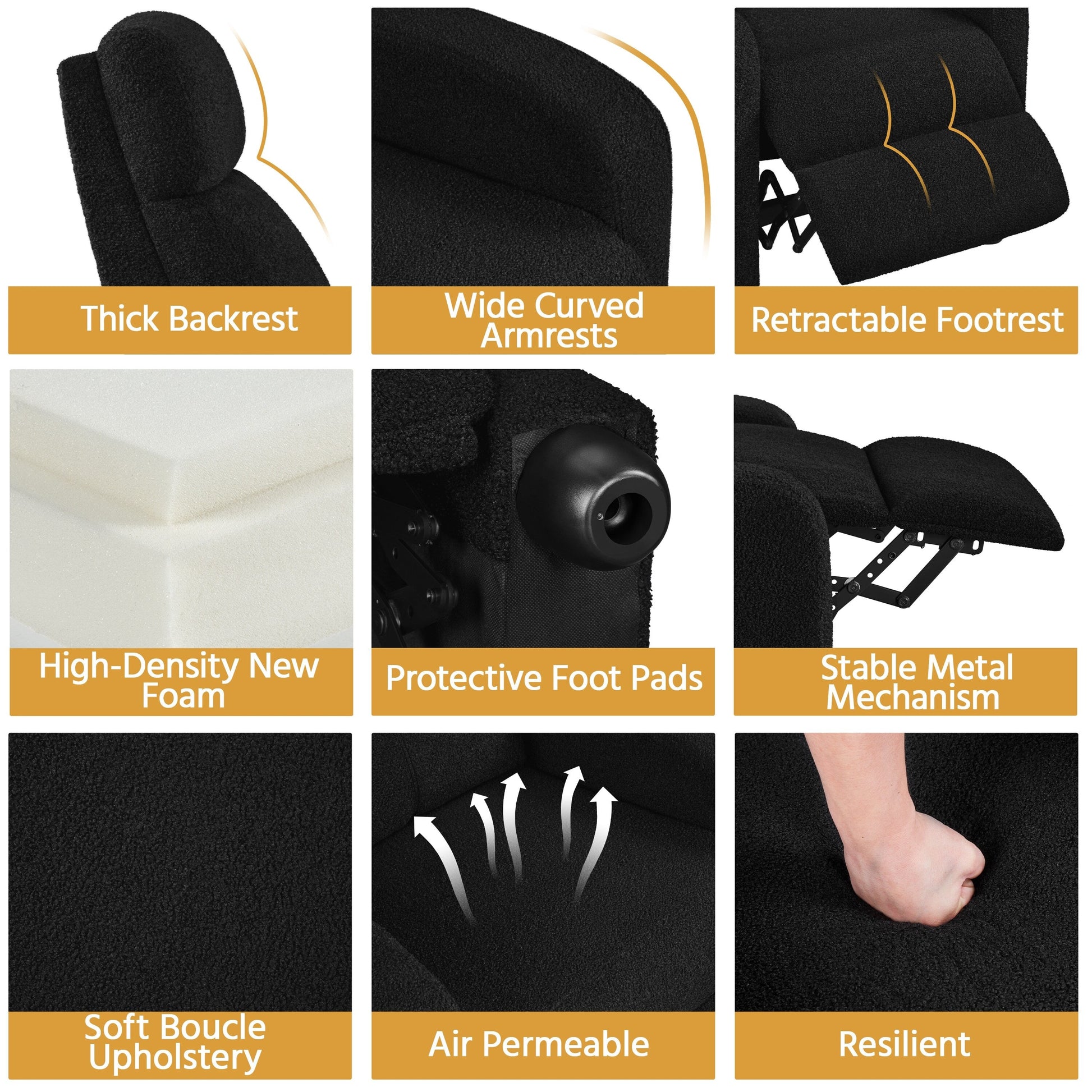 - Confort comme un nuage : Plongez dans le confort avec ce canapé inclinable rembourré, doté de ressorts ensachés, d'un dossier en mousse et en fibres et d'un tissu bouclé confortable, offrant une élasticité et une douceur inégalées