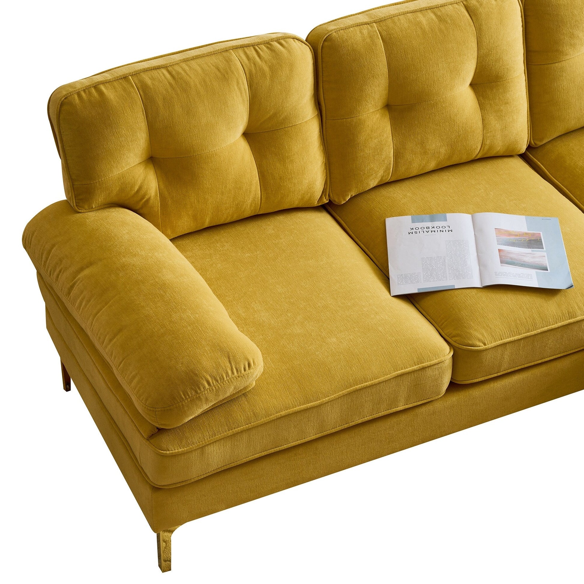 Canapé sectionnel 3 places en velours jaune 83 pouces avec dossiers amovibles et pieds en métal